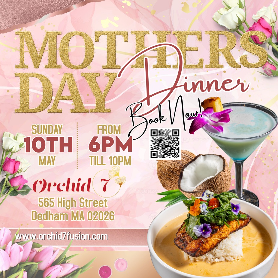 This Mother’s Day, treat the special women in your life to an unforgettable dining experience at Orchid7 Fusion Bar & Grill. Nestled in the heart of Dedham Square, our restaurant offers a vibrant and welcoming atmosphere perfect for celebrating this cherished occasion. Join us for a delightful culinary journey featuring our exquisite fusion cuisine, inspired by flavors from the Caribbean, Africa, Europe, and Latin America. Our talented chefs have crafted a special Mother’s Day menu that combines creativity and tradition, ensuring a memorable meal for everyone. Enjoy exceptional service and a warm ambiance as you create lasting memories with your loved ones. Whether it’s a cozy brunch or an elegant dinner, Orchid7 is the perfect place to honor and appreciate the incredible mothers in your life. Reserve your table today and make this Mother’s Day truly special at Orchid7 Fusion Bar & Grill.
